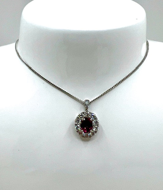 18ct White Gold Ruby and Diamond Cluster Pendant