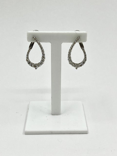 18ct white gold diamond drop/hoop style earrings. A row of diamonds that graduate from the front to a mid point then graduate up to the back of the ear.