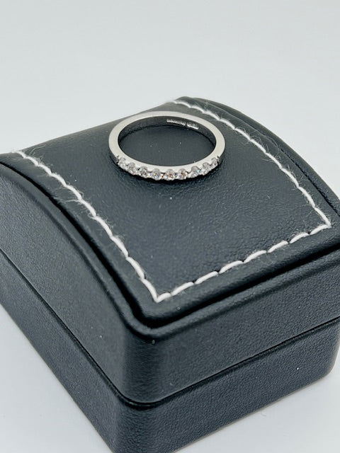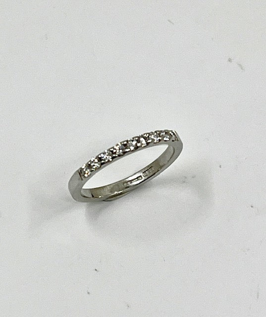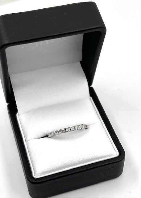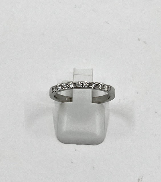 18ct white gold diamond eternity ring. Nine round brilliant cut diamonds in shared claw settings to a plain shank.