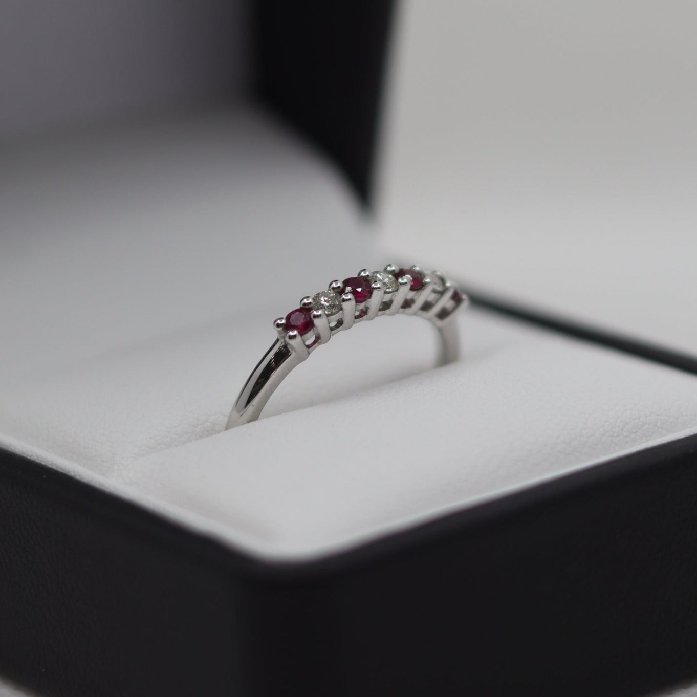 9ct White Gold 7 Stone Ruby and Diamond Eternity Ring