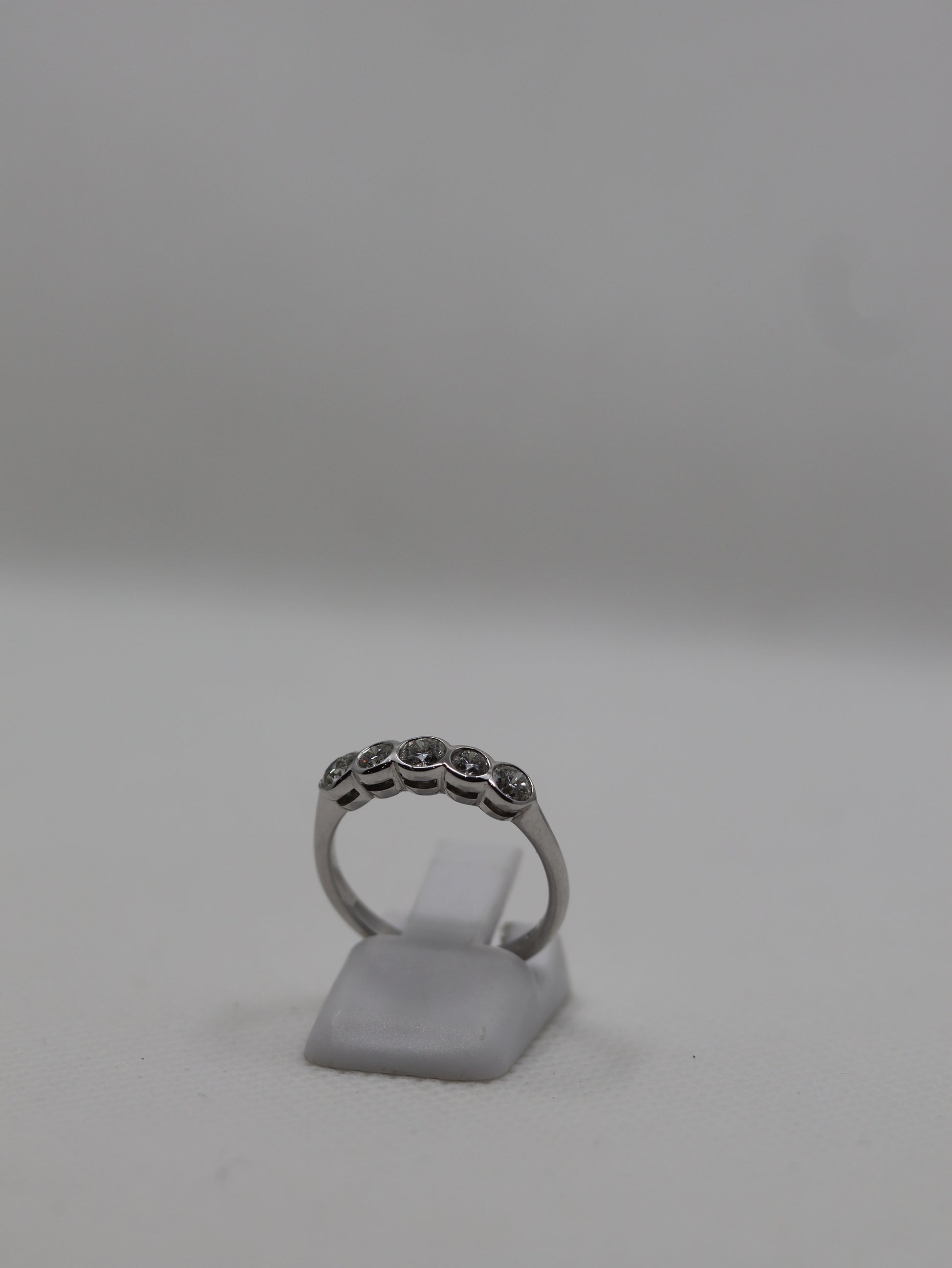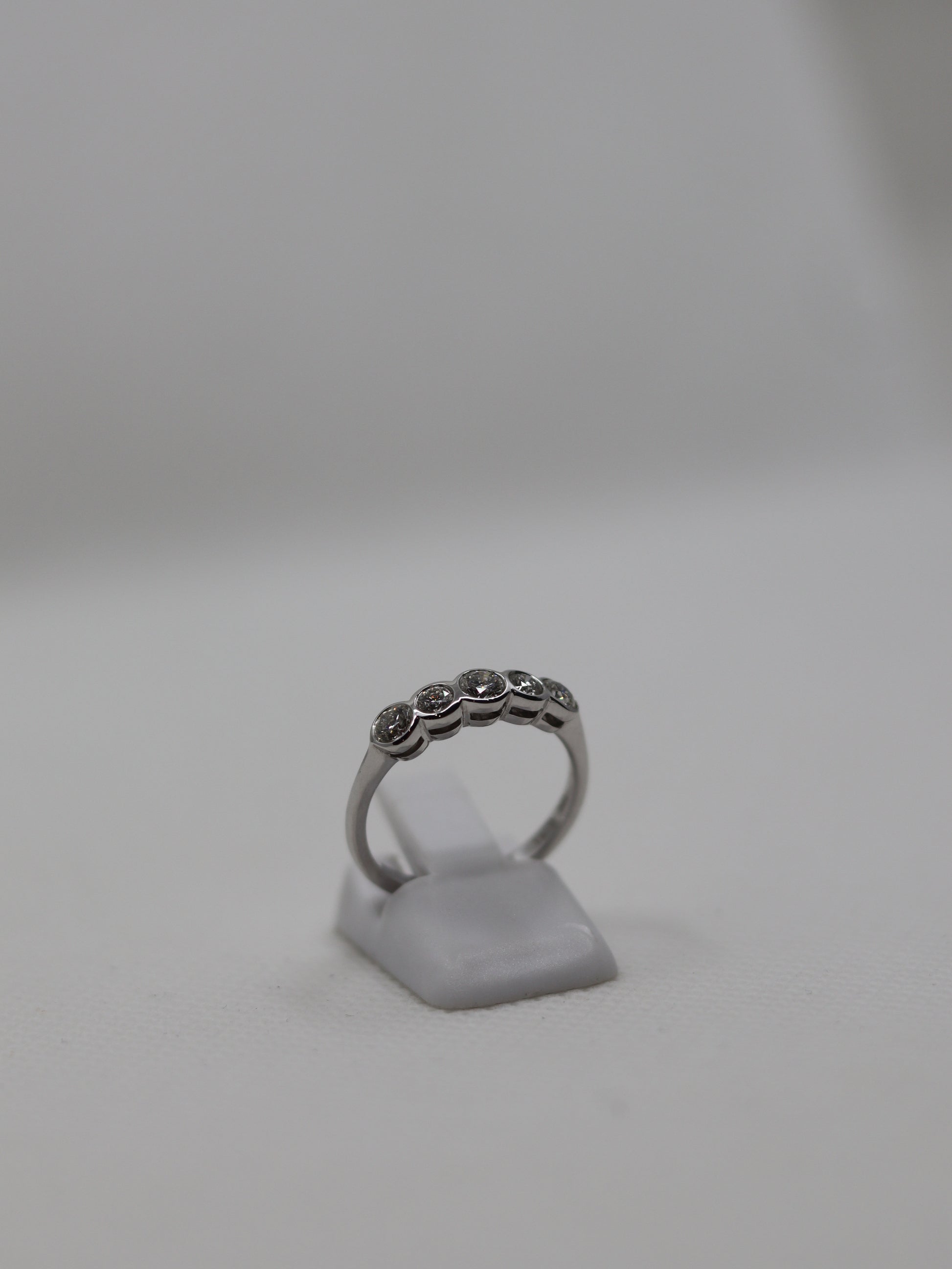 18ct white gold diamond eternity ring. 5 round brilliant cut diamonds in individual bezel settings to a plain tapering shank.