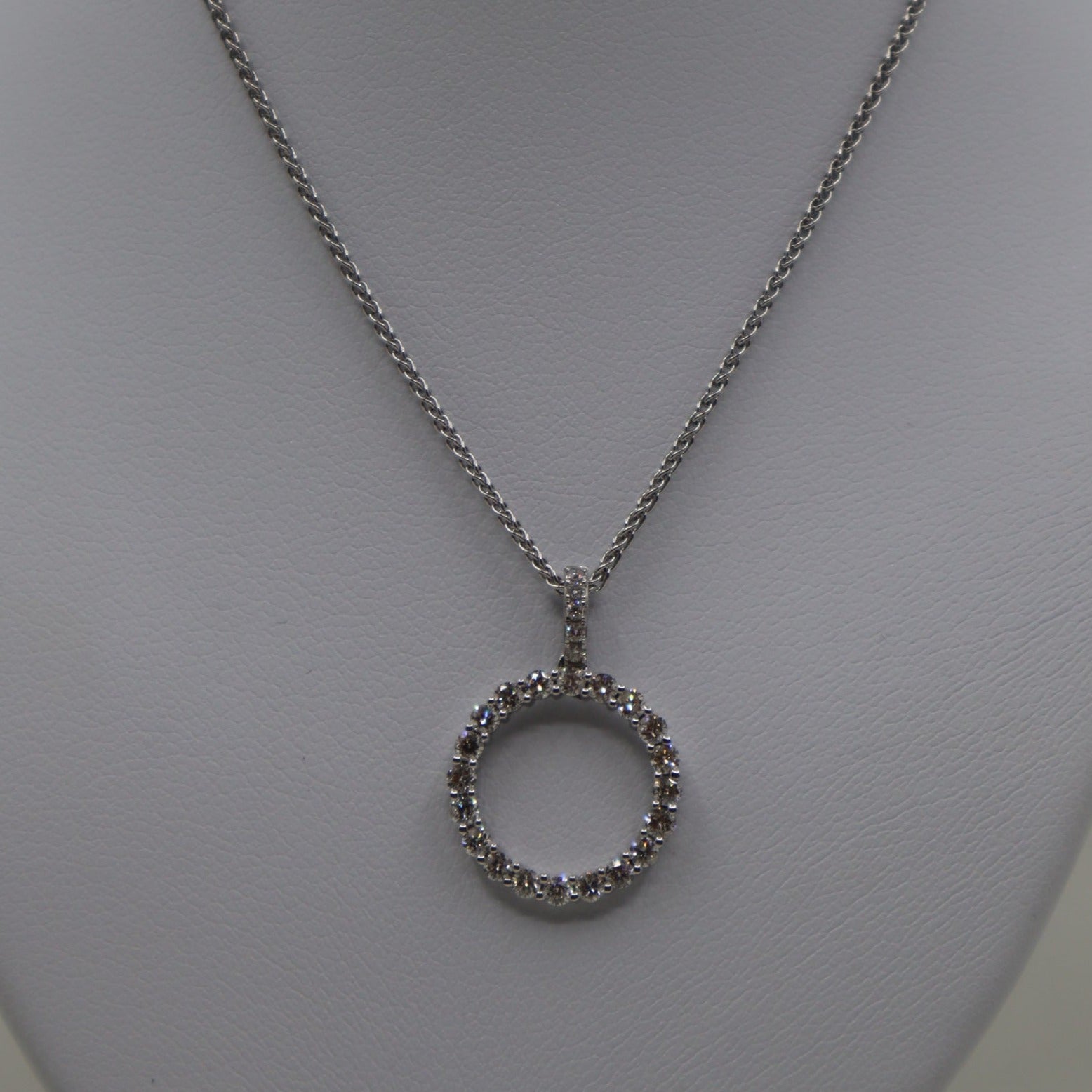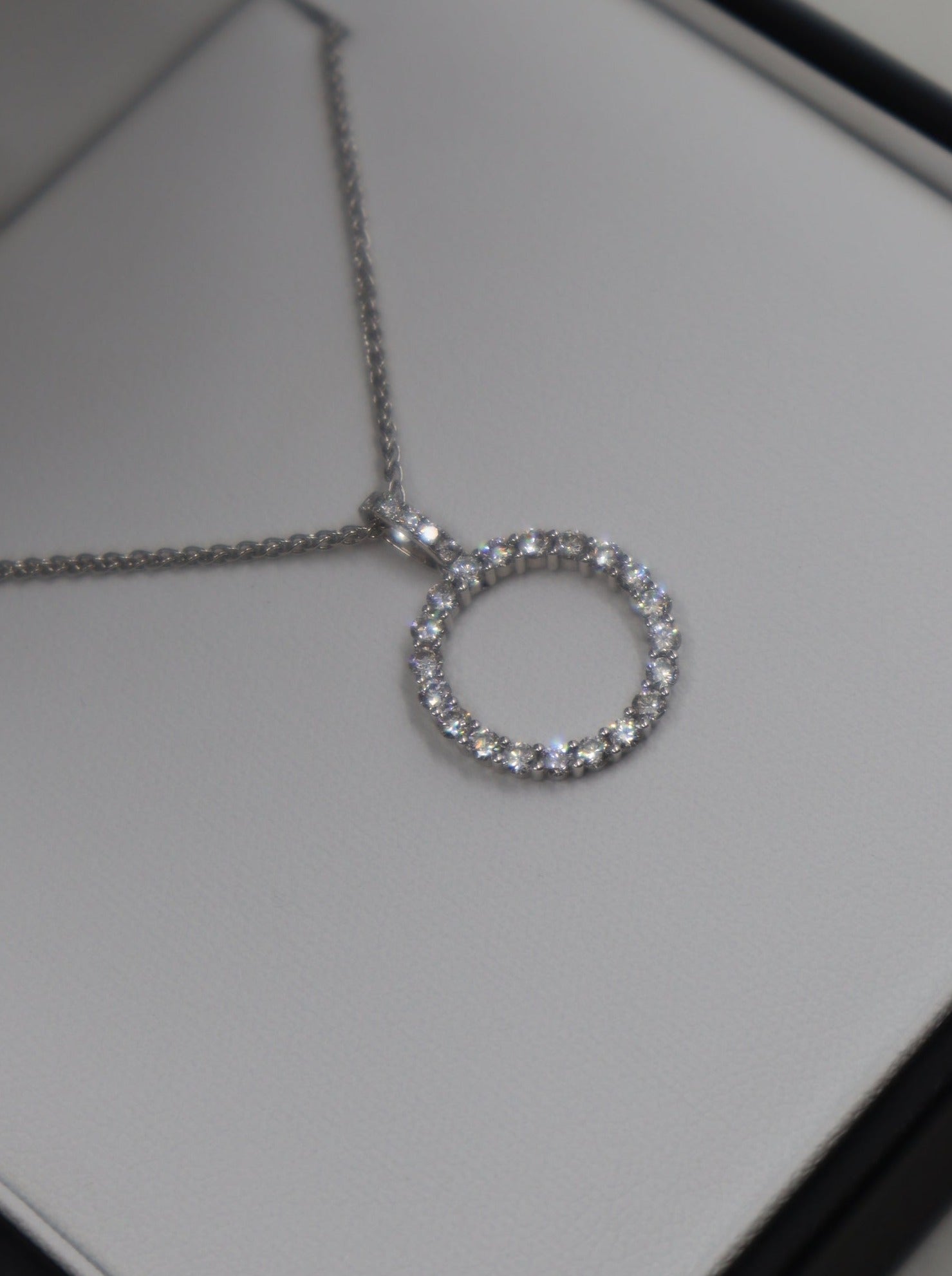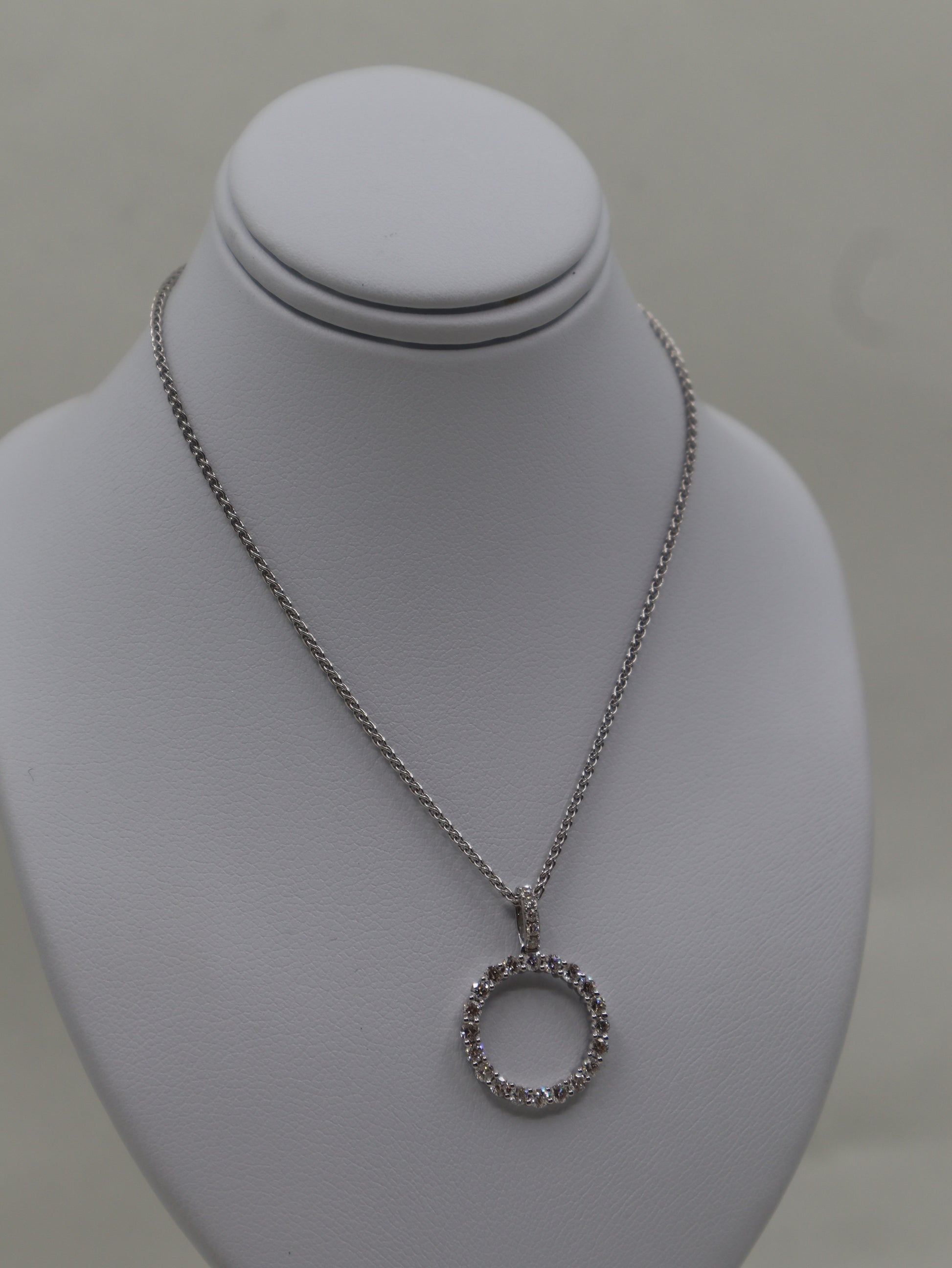 9ct White Gold Diamond Circle Pendant and Chain